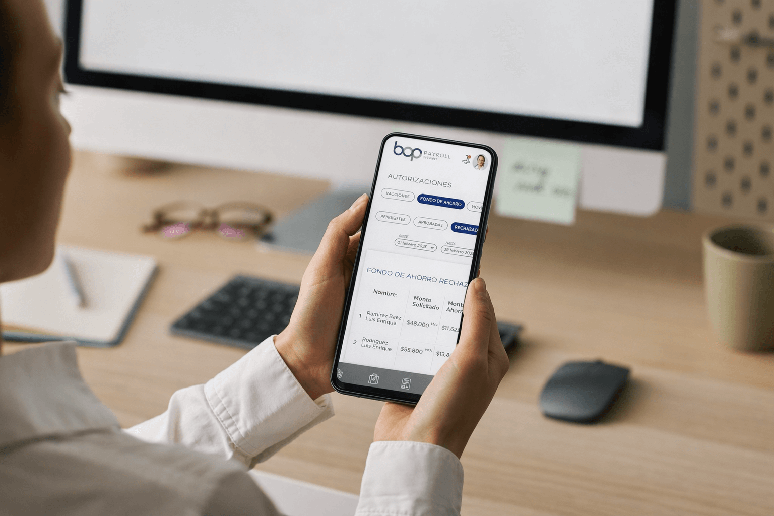 Con la integración de BOP ONE y Mi BOP, el punto de entrada es único. El usuario inicia sesión una sola vez y accede, de manera natural, a su información como colaborador. Desde ahí puede consultar recibos de nómina, gestionar solicitudes de vacaciones o permisos, revisar su fondo de ahorro y mantener actualizados sus datos personales, todo disponible 24/7 desde su dispositivo móvil.